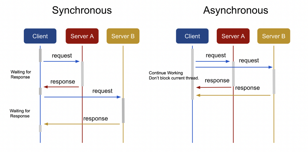 사용자가 서버로 요청을 보냈을 경우 요청에 대한 응답을 리턴받기 전까지는 다른 것을 하지 못하고 기다려야 한다.
