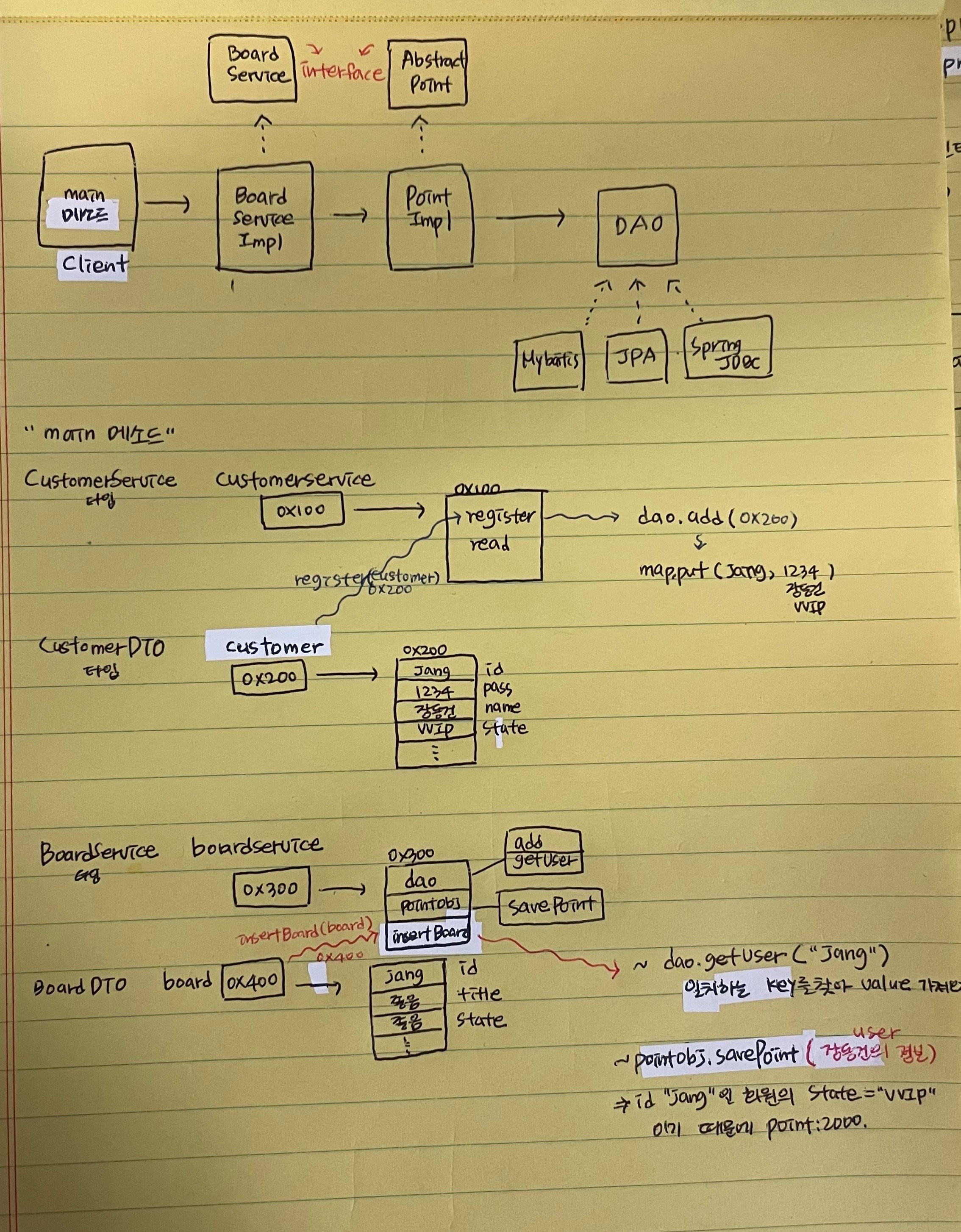 계속 해왔던 oop내용인데 갑자기 인터페이스가 끼고 구현, 스프링, 상속의 상속의 상속... 조금 많아진 이유로 머리가 복잡해졌다.. 바로바로 이해가 되지 않으면 항상 노트에 먼저 정리부터 하고 그림부터 그린 후에 다시 풀어내보자!!!