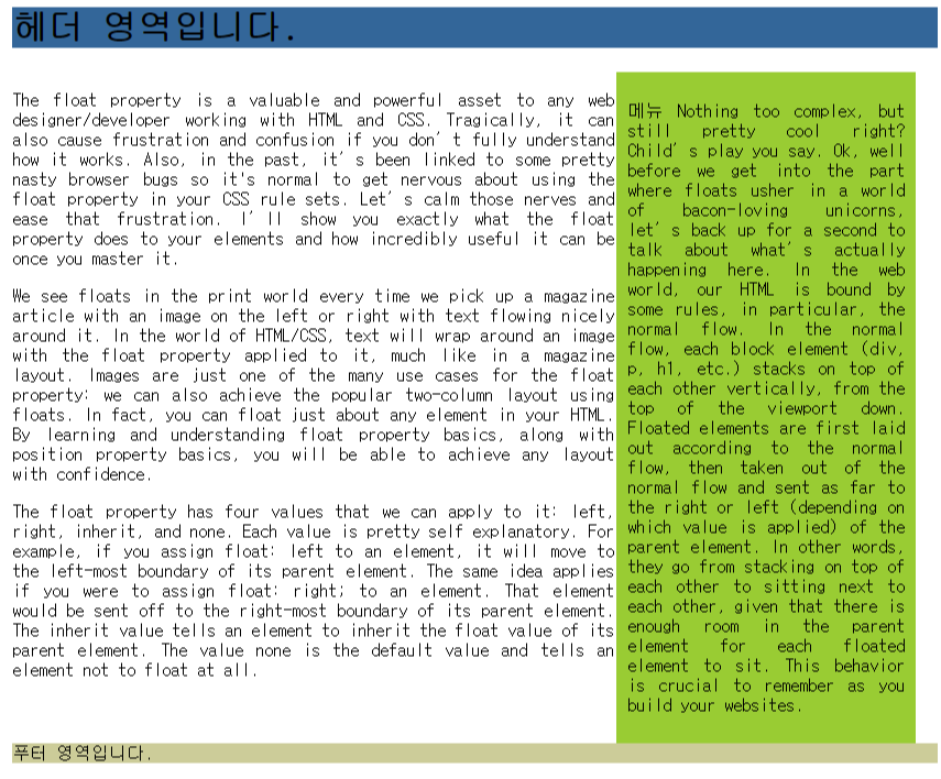 플로팅이 웹 문서에 부분적으로 적용이 된 경우에는 다른 엘리먼트 영향을 미칠 수 있으므로 플로팅을 해제