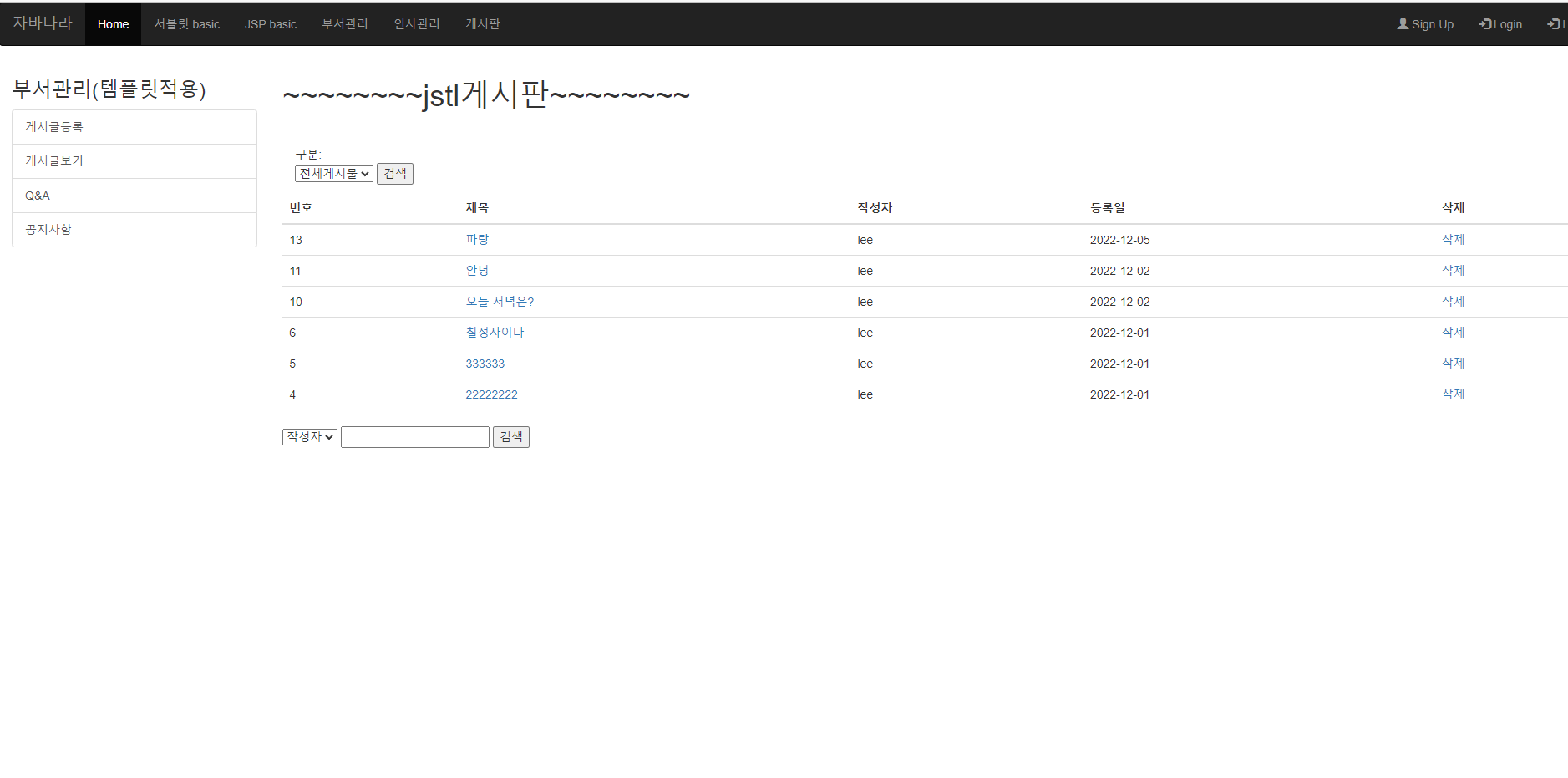 ** 위의 사진처럼 메인화면의 구성을 유지하면서 top 게시판메뉴만 남기고 왼쪽메뉴와 가운데 내용물을 바꿔보자.