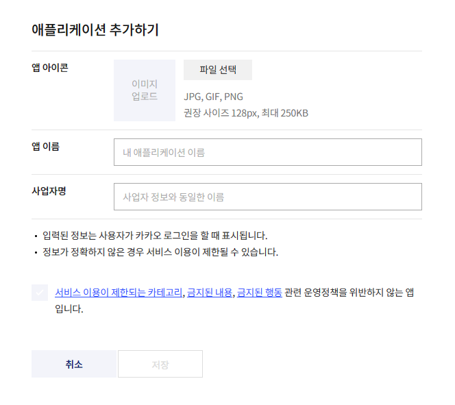 앱 키를 발급받기 위해 Kakao Developers에 가입해 애플리케이션을 추가합니다.