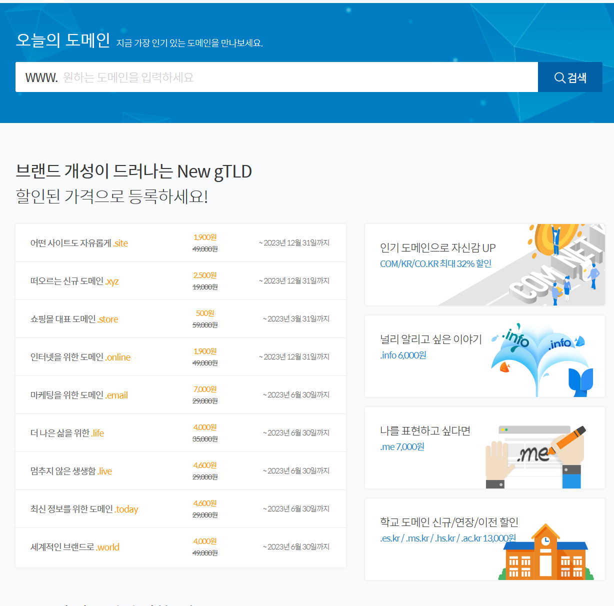 무료 도메인을 사용할까 하다가 이왕 하는 김에 조금이라도 예쁜 도메인을하기 위해 할인하고 있는 것으로 구매하였다.