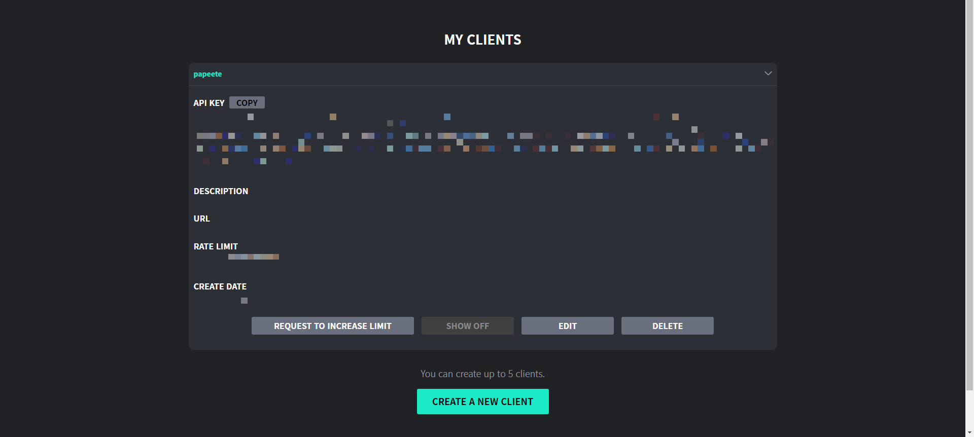 홈페이지에 접속해 로그인해 준 후 이름을 적어준다(영문으로!). 이용약관에 동의한 후 클라이언트를 생성한다.
